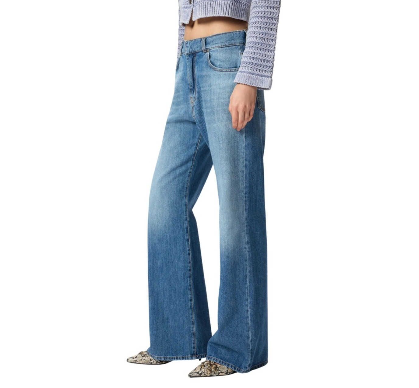 JEANS WIDE LEG CON SCOLORITURE