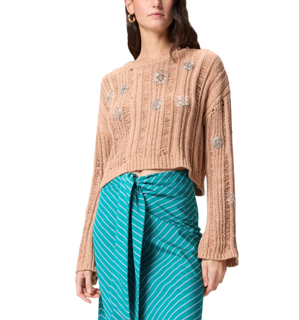 MAGLIA TRAFORATA CON DETTAGLI GIOIELLO